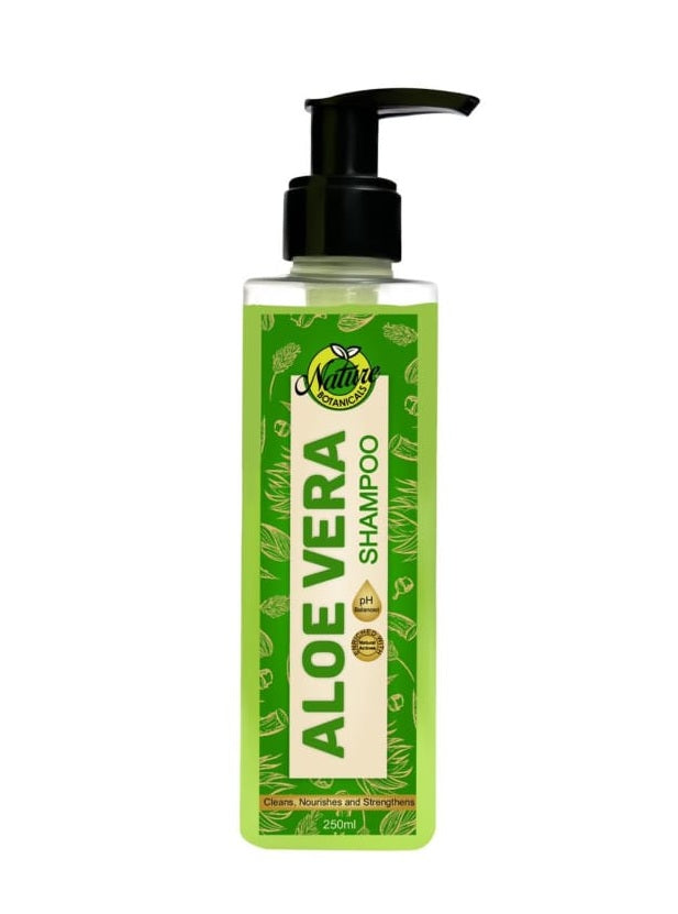 Nature Botanicals Aloe Vera Shampoo contains a healthy restorative hair treatment for dull, dry, frizzy hair.Enriched with the natural goodness of aloe vera, combined with a host of beneficial properties, it makes your hair stronger and gives it the sheen you've always wanted it to have.If hair loss is something you expierence then using Nature Botanicals Aloe Vera Shampoo for hair growth is the best idea. Nature Botanicals Aloe Vera Shampoo keeps dry hair hydrated and softens it. It adds gloss and ricochet to drab hair and makes it possible to manage.It mends damaged hair and shields it from further damage. Nature Botanicals aloe vera shampoo is made of genuine ingredients which allow day to day usage. Its anti-inflammatory properties help reduce redishness and itchiness. It boosts hair growth and cleanses and guards the scalp against infections. Nature Botanicals Aloe Vera Shampoo is packed with the necessary ayurvedic extracts. This helps in strengthening hair and overall health of hair. Improve your hair cleansing routine with Nature Botanicals shampoos to get the best results possible.
